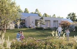 V rámci připravované nové developerské lokality s rodinnými domy byl navržen tento přízemní RD s kombinací šikmé sedlové střechy a ploché střechy s atikou. Hlavní uliční hmota objektu evokuje klasický dobový RD, zatímco část objektu situovaná do zahrady nese prvky moderního/minimalistického stylu. Pro lepší zakomponování do okolní zeleně byl zvolen dřevěný fasádní obklad, který je navržen na fasádách tradiční části RD. Zbytek fasád je tvořen klasickou probarvenou omítkou. Vnitřní dispozice je účelně rozčleněna na denní a klidovou zónu, tak aby se vzájemně nemíchaly a byl tak zvýšen vnitřní komfort obyvatel RD. Hlavní obytný prostor s kuchyní se nachází v části s šikmou střechou a je otevřen do krovu s viditelnými pohledovými prvky, což mu přidává na velkorysosti a vzdušnosti. Propojení všech obytných místností s navazující zahradou je pomocí francouzských oken. RD je dispozičně řešen jako 4+KK. Vedle domu je navrženo umístění zahradního skladu v podobném architektonickém řešení jako RD.